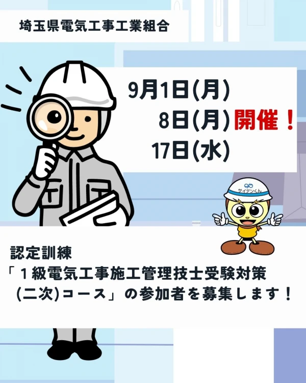 認定訓練「1級電気工事施工管理技士受験対策(二次)コース」の参加者を募集を開始いたします!