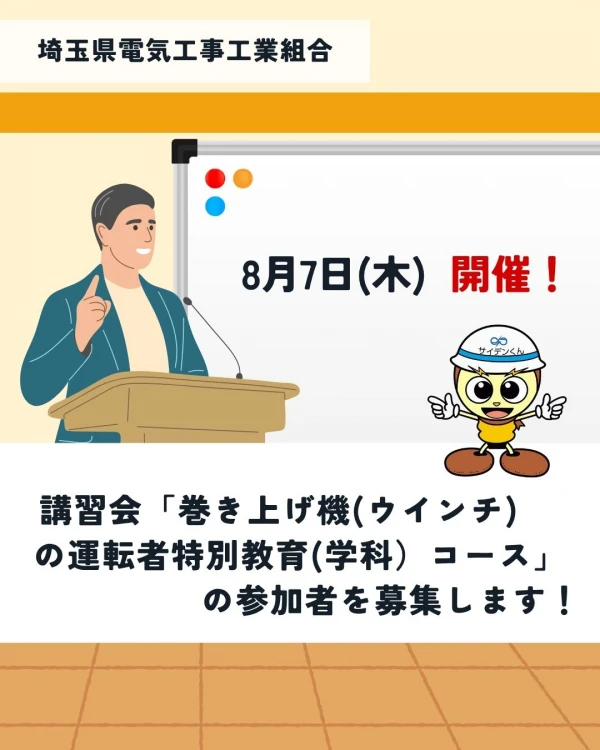 講習会「巻き上げ機(ウインチ)の運転者特別教育(学科)コース」の参加者を募集を開始いたします! 下記URLよりお申込みください!