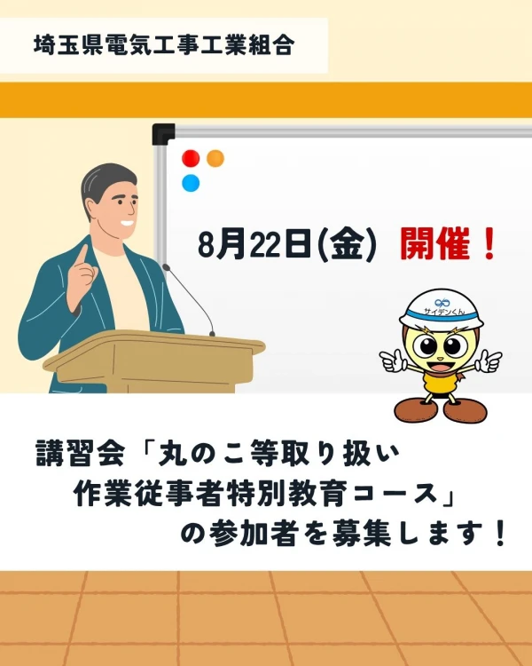 講習会「丸のこ等取り扱い作業従事者特別教育コース」の参加者を募集を開始いたします! 下記URLよりお申込みください!