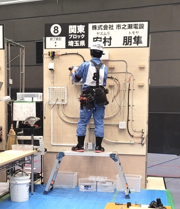 全日本電気工事業工業組合連合会(米沢寛会長)は令和6年11月28日(木)、「第5回電気工事技能競技全国大会」を横浜アリーナで開催しました。 競技の結果、埼玉県の代表として安村朋隼選手(志木支部 ㈱市之瀨電設)が出場し、惜しくも入賞を逃しましたが、完成度の高い作品を時間内に作成しました。