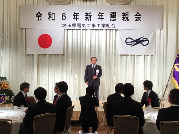 当工組は1月23日(火)に、さいたま市中央区のホテルブリランテ武蔵野で通常評議員会終了後、多くの来賓の臨席のなか新年懇親会を開催しました。 羽鳥隆行副理事長が開会の辞を述べた後、沼尻芳治理事長が登壇し、主催者挨拶を述べました。 来賓祝辞では、森田俊和衆議院議員、西田実仁参議院議員、上田清司参議院議員、大野元裕埼玉県知事、埼玉県議会の立石泰広議長、田村琢実県議会議員、東京電力パワーグリッド㈱の杉本順埼玉総支社長、全日本電気工事業工業組合連合会の岡崎事務局長、(公社)全関東電気工事協会の嶋野貞雄会長から祝辞が述べられました。 その後、埼玉県中小企業団体中央会の小谷野和博会長の発声で参加者全員が乾杯。4年ぶりの開催ということもあり、和やかな雰囲気のなかで出席者が歓談しました。 |