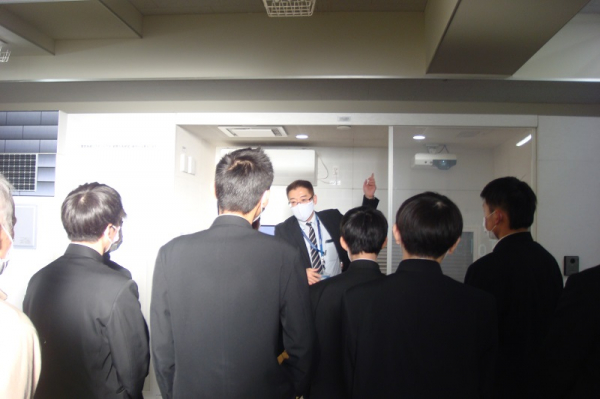 また、1階の実技研修場で、パナソニック㈱エレクトリックワークス社の協力で「HOMEIOT・エネルギーソリューション・レジリエンス」体験学習を実施したところ、多数の先生や生徒がIoTによる管理システムに興味を示し、真剣に聞き入っていました。最後に、各班から意見交換の結果の発表があり、研修会が終了しました。