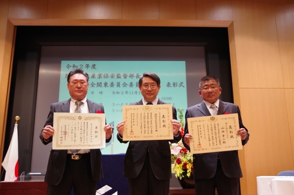 経済産業省関東東北産業保安監督部及び電気安全関東委員会は、11月19日(木)に、さいたま新都心合同庁舎第1号館講堂で令和2年度「関東東北産業保安監督部長表彰」及び「電気安全関東委員会委員長表彰」の合同表彰式を開催し、当工組からは3社4名が受賞の栄誉に輝きました。 当工組の受賞者は次のとおりです。 【関東東北産業保安監督部長表彰】 〈電気工事業者の営業所の部〉 大宮支部 瑞穂電設㈱(郡司 欣則氏) 〈個人の部 電気工事士部門〉 浦和支部 山田 幸二氏(㈲山田電業) 【電気安全関東委員会委員長表彰】 〈電気工事事業者〉 大宮支部 ㈱維新電設(角谷 幸夫氏) 草加支部 ㈱サトウ電機(佐藤 力氏) 〈電気安全功労者・電気工事士〉 大宮支部 石川 直希氏(㈱石川電気) 〈電気安全功労者・現場第一線従事者〉 川口支部 管 美津春氏(藤田電気工事㈱) 大宮支部 野上 隆氏(野上電気工業㈱) |
