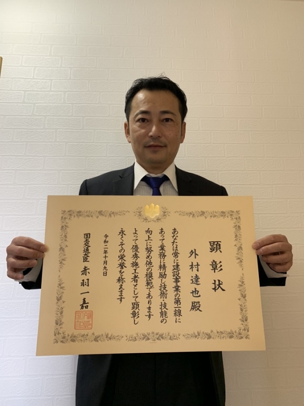 外村達也常務理事が「優秀施工者国土交通大臣顕彰」受賞