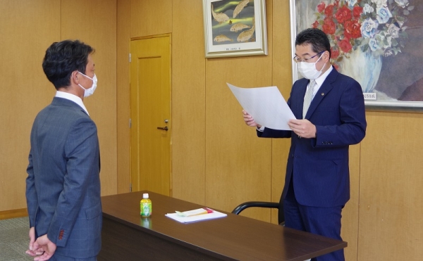 続いて、表彰式を開催し、江野会長から優秀支部の2支部青年部会、特別協力表彰の11支部青年部会、優秀会員表彰の4名、奨励賞の4名を代表して、東松山支部青年部会の西島代議員に表彰状と副賞が贈られ、一連の行事が終了しました。