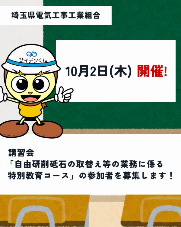講習会「自由研削砥石の取替え等の業務に係る特別教育コース」の参加者の募集について