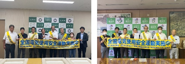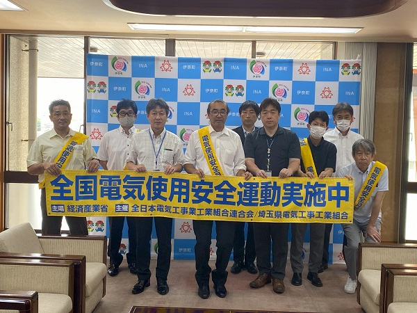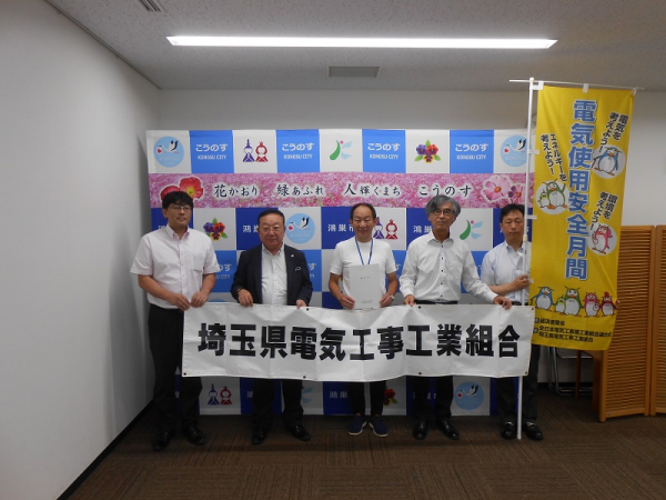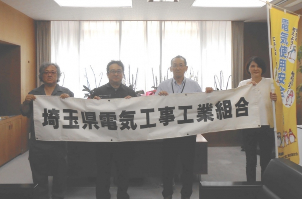 上尾支部(安井秀樹支部長)は令和6年8月1日(木)及び8月6日(火)に経済産業省が主唱して、毎年8月1日から31日までの間に実施している「電気使用安全月間」において、電気使用の安全を啓発するためのキャラバン隊によるキャンペーン活動を同支部管内の上尾市、桶川市、北本市、蓮田市、伊奈町の5自治体を対象に実施しました。 8月1日(木)に上尾市役所、8月6日(火)には桶川市役所、北本市役所、蓮田市役所、伊奈町役場を訪問し、北本市では三宮幸雄市長に、蓮田市では加藤繁副市長に、上尾市、桶川市、伊奈町では自治体の担当者らと面会し、活動の趣旨説明をするとともに、趣意書とポスターなどを手渡し理解と協力をお願いした。各自治体の首長や担当者は深い理解を示し、各自治体に電気使用の安全に関する有意義な活動となりました。 |