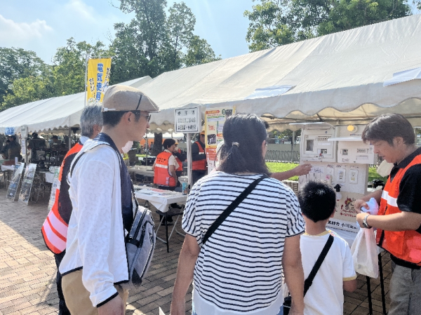 本庄支部(長沼真吾支部長)と小川支部(岡野友幸支部長)は合同で令和6年9月7日(土)に深谷市が主催する「令和6年度深谷市総合防災訓練・防災フェア」に参加しました。 この訓練は、関東平野北西緑断層帯によるマグニチュード8.1の地震が発生し、深谷市で震度7を記録し、ライフライン施設に甚大な被害が発生したことを想定し、市・防災関係機関・市民・事業所等の連携のもと、実践的かつ効果的な各種訓練を総合的に実施することで、災害対応能力の強化、防災体制の充実及び防災意識の高揚を図ることを目的に行われました。 防災フェアエリアにて、電気に関する相談ブースを出展し、感震機能付き分電盤のデモンストレーションを実施しました。南海トラフ地震への備えや昨今の地震の影響により、多くの方が関心を持って話を聞かれていました。また来場者にチラシ等を配布し、住宅電気工事センターのPR活動なども行いました。 今後も各機関と連携し、地域の防災等に貢献できるように活動してまいります。 |